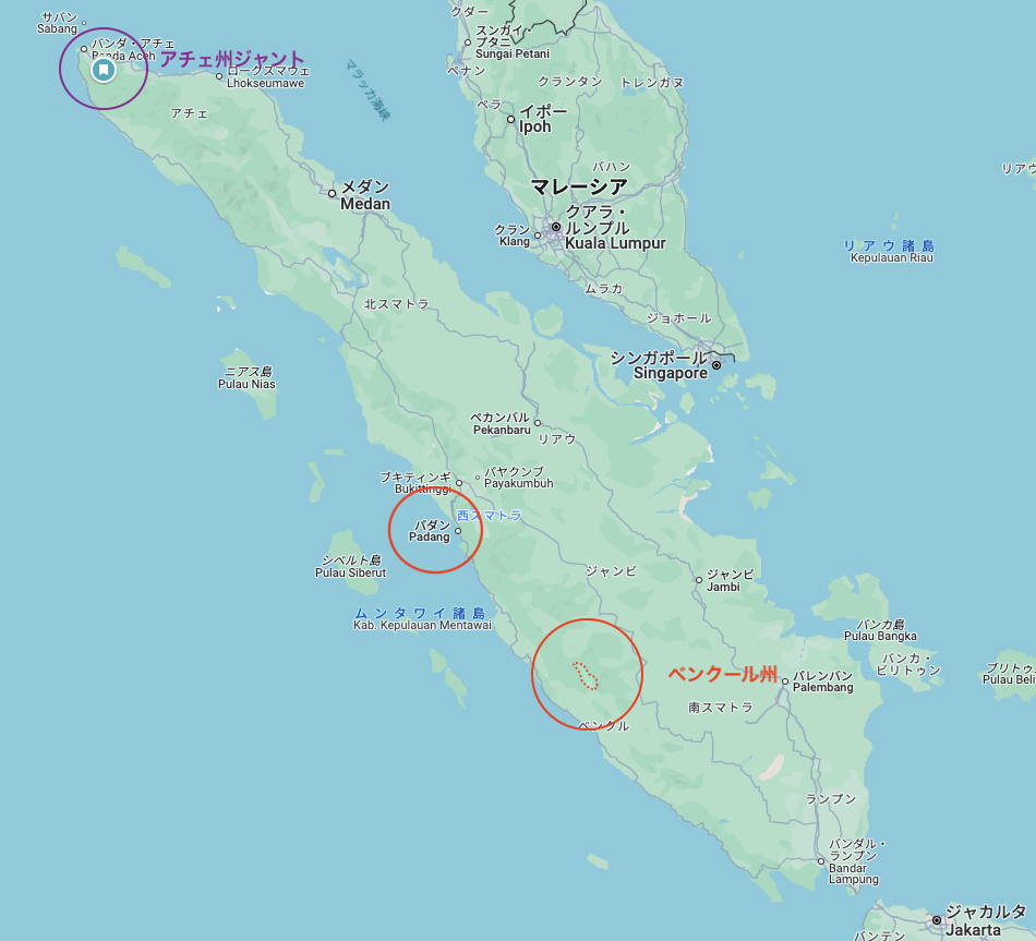 リノケロスフタマタ・スマトラ亜種はパダンより南のスマトラ島中南部が主な生息地で「北スマトラ州」では見つかっておらず、アチェ州ジャントで飛び地的に生息しているとのことです。