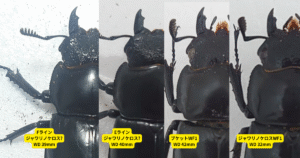 ちなみにオオクワ(63mm)と比べるとこんな感じ。