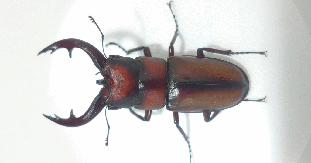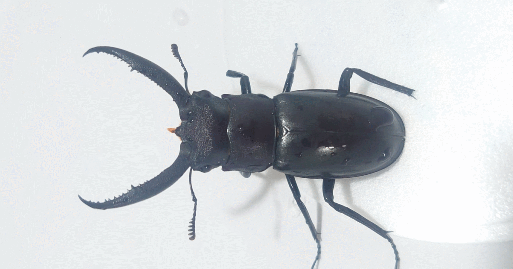 標本データ 【種 類】 アマミマルバネクワガタ原名亜種 Neolucanus protogenetivus protogenetivus【個体番号】K2【サイズ】 52.9mm【累代】CBF5【産地】鹿児島県大島郡徳之島 (天城岳)山クビリ林道【羽化】2025年7月16日